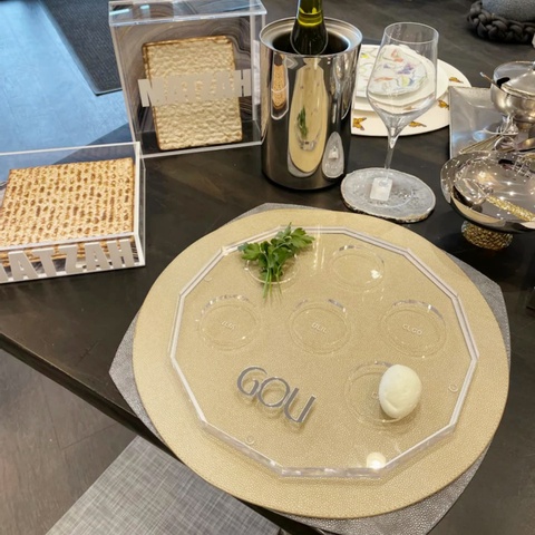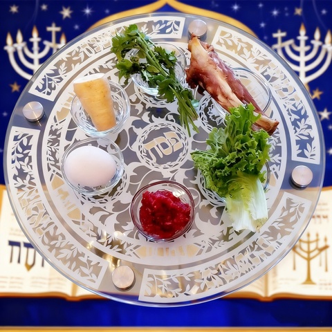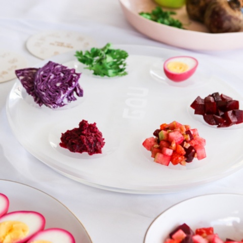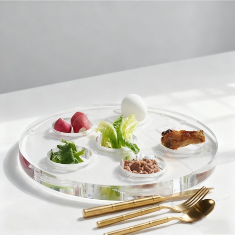 Lujoso Karpas Beitzah Seder Plato Acrílico Pascua Cena Platos Mesa Centro de mesa