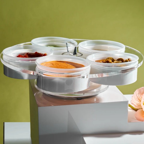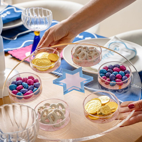 Clear Lucite Shabbos Plate Passover Dip Dish Holiday Party Guest Serving Tray