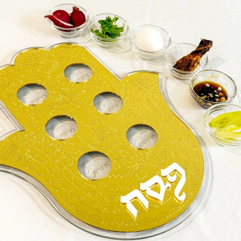Hamsa Seder placa oro plata espejo acrílico Pascua bandeja impresionante Pesach Decoración de mesa decoraciones